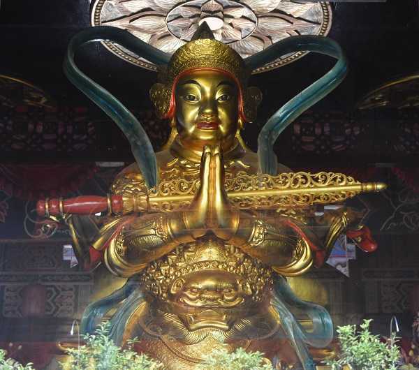 Peaceful Vajrapani statue seen at Kek Lok Si Temple in Malaysia.