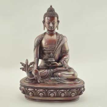 Oxidized Copper 9" Medicine Buddha Statue (Hand Carved) - 350px