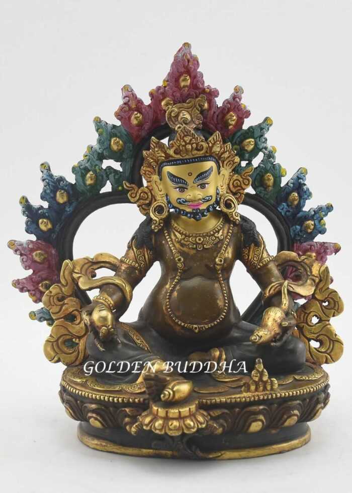 Partly Gold Gilded 7.25″ Yellow Jambhala Sculpture, Hand Face Painted, Fine Detail