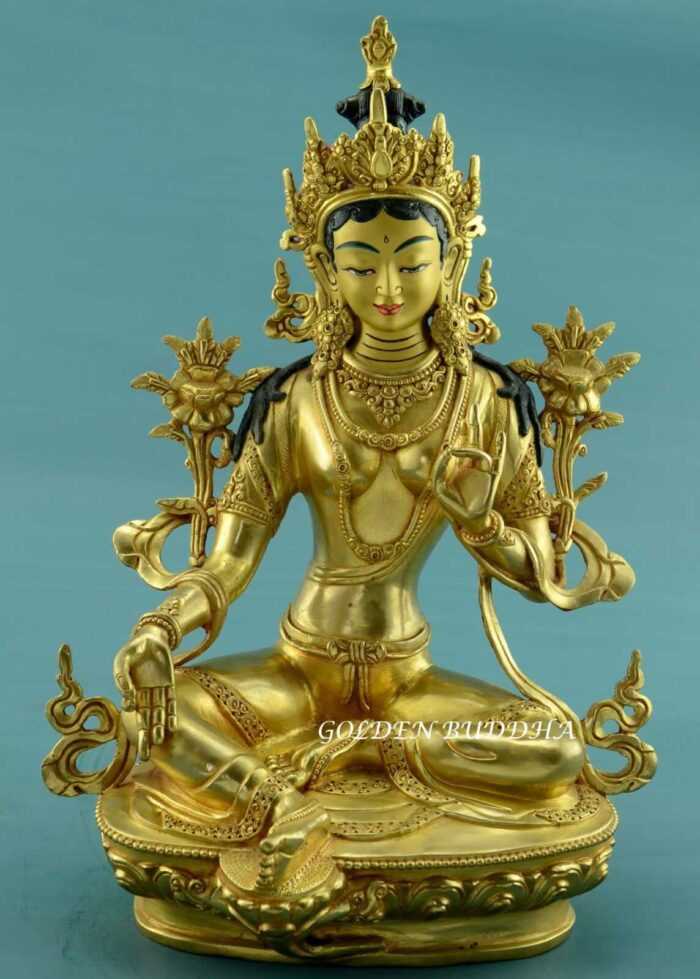 Original price was: $1,299.00.$989.00Current price is: $989.00.Add to CartFully Gold Gilded 14″ Jetsun Dolma Statue, Hand Carving, Gold Face Painted