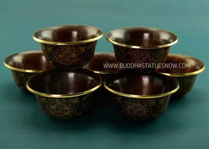 Original price was: $299.00.$199.00Current price is: $199.00.Add to Cart3.5″ Set of Seven Oxidized Water Offering Bowls, 24k Gold Gilded, Handmade