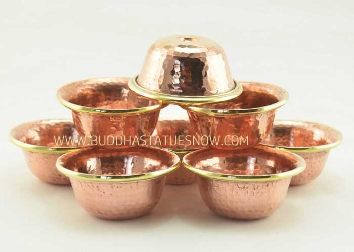 Original price was: $269.00.$189.00Current price is: $189.00.Add to Cart4″ Set of Eight Handmade Water Offering Bowls, Copper Alloy w/Brass Rings