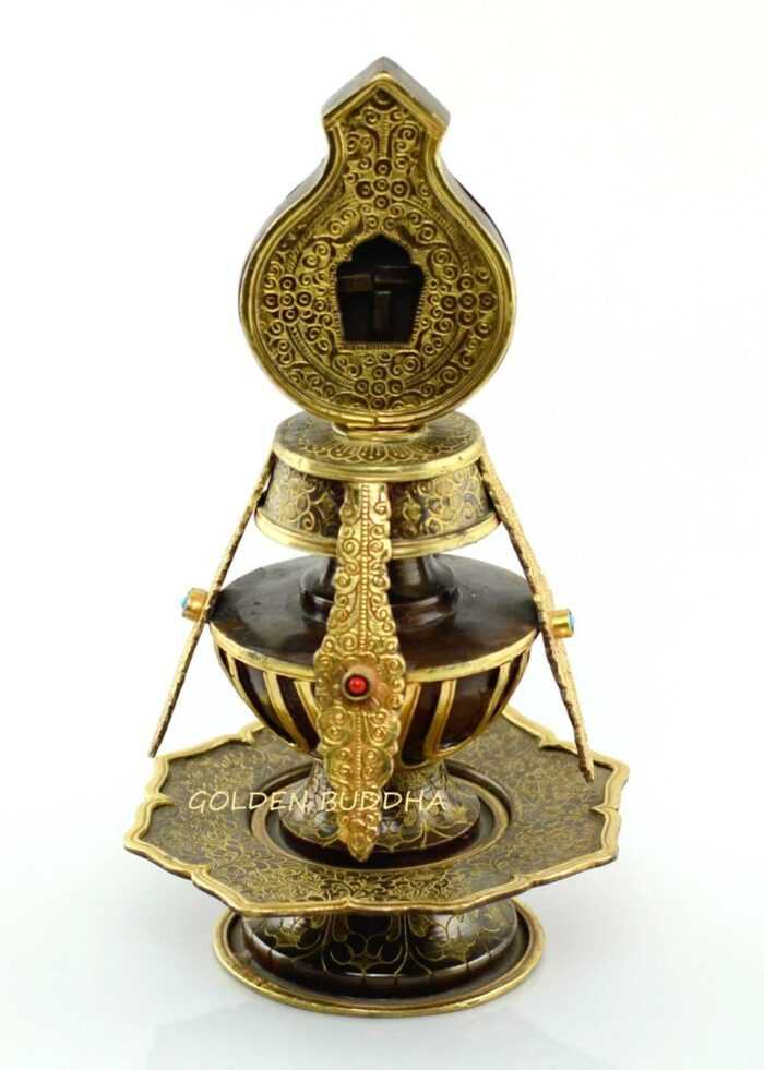 Original price was: $399.00.$279.00Current price is: $279.00.Add to Cart7.75″ Kadam Style Stupa, 24K Gold Finish, Handmade in Nepal