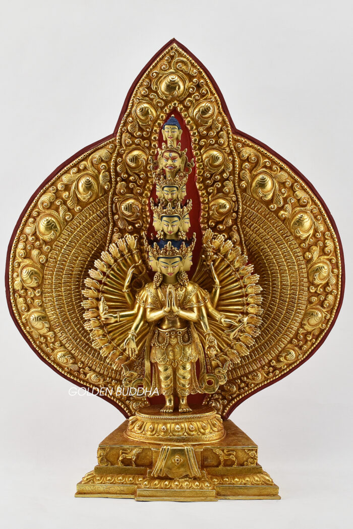 Fully Gold Gilded 14.5″ 1000 Armed Tibetan Chenrezig Statue, Fine Details