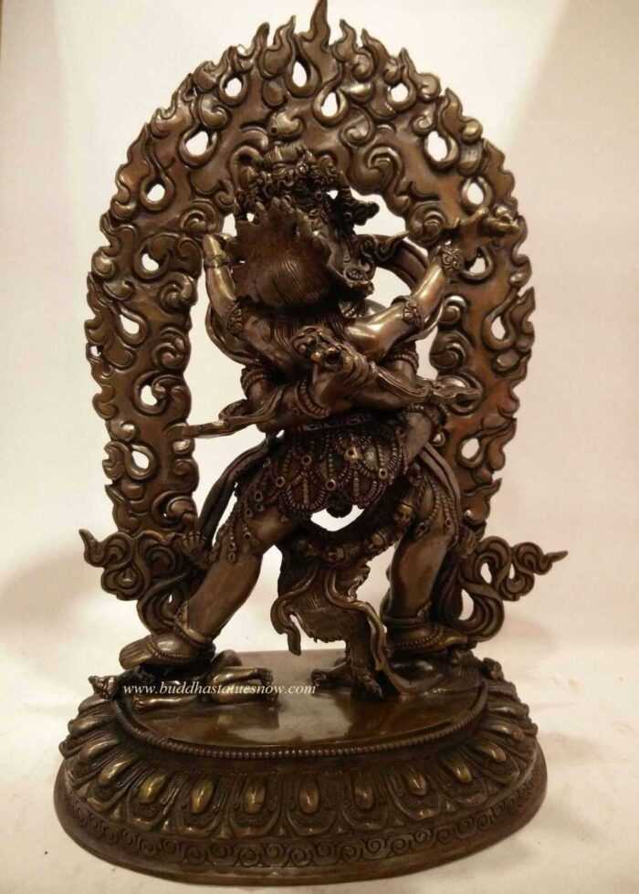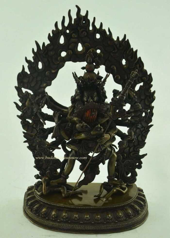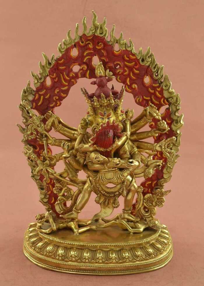 Our Chakrasamvara statues for sale are handcrafted by the artisans of Patan, Nepal using the lost wax method. The statues depict Chakrasamvara with consort Vajravarahi in intricate detail. Nepali statues have long been the preferred source of the Tibetan monasteries. Please rest assured that each Chakrasamvara statue with consort is a monastic quality sculpture that will enhance your Dharma practice. Choose your statue from the selection below.