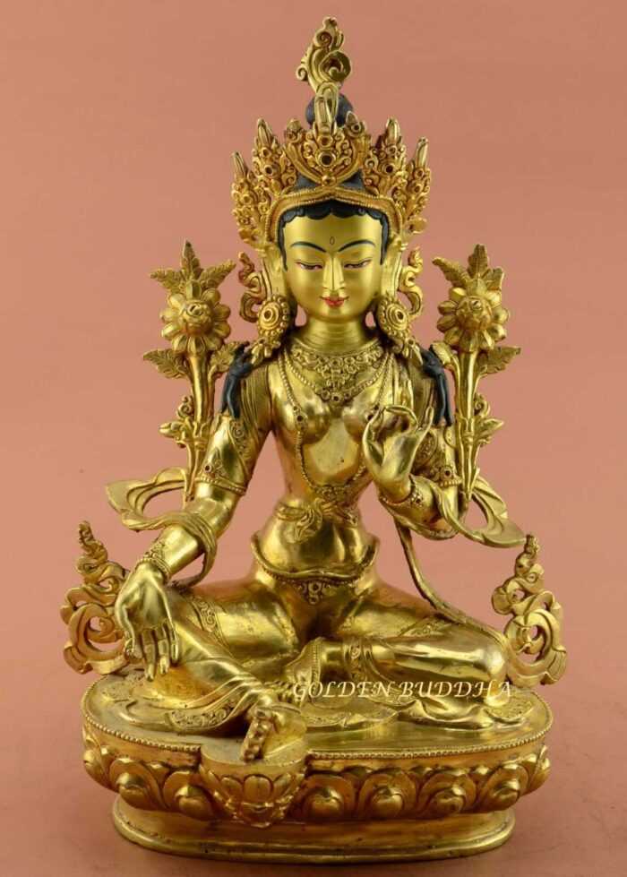 Original price was: $3,399.00.$2,259.00Current price is: $2,259.00.Add to Cart9″ Green Tara Statue for Sale, Beautiful Hand Carved, Jestun Dolma, Fire Gilded 24K Finish