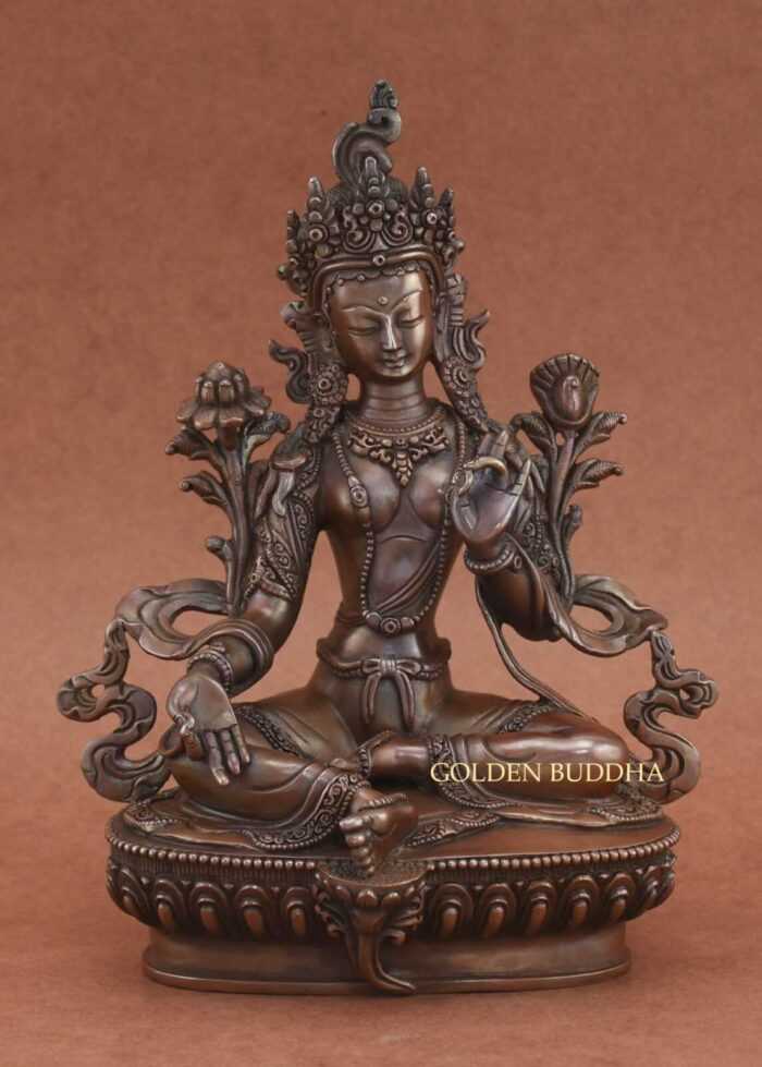 Original price was: $699.00.$499.00Current price is: $499.00.Add to CartAntiquated Green Tara Statue 9.5″, Oxidized Copper Finish, Finely Hand Crafted in Patan, Nepal