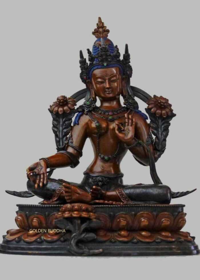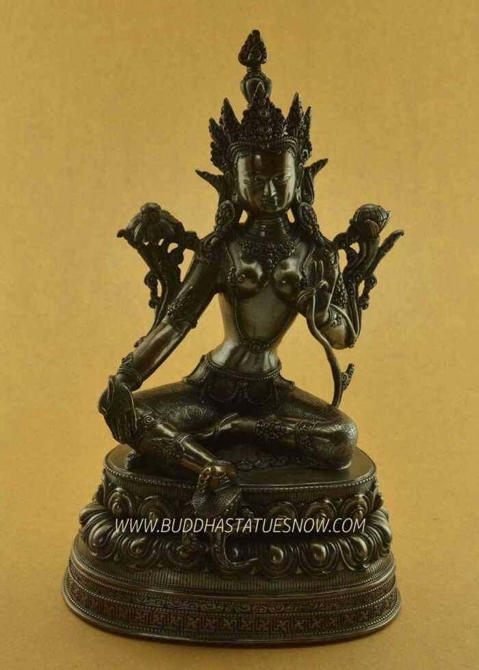 Original price was: $2,999.00.$1,999.00Current price is: $1,999.00.Add to CartOxidized Copper 31cm Green Tara Statue, Handmade, Double Lotus Pedestal