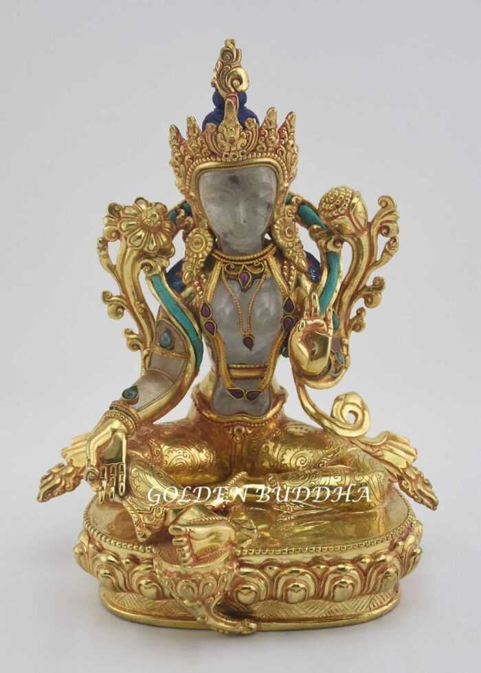 Original price was: $699.00.$499.00Current price is: $499.00.Add to CartGold Gilded 9″ Nepali Dolma Statue, Crystal Body, Semi-Precious Stones, Fire Gilded 24K Finish