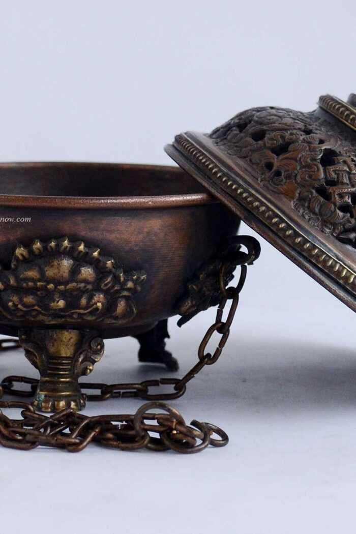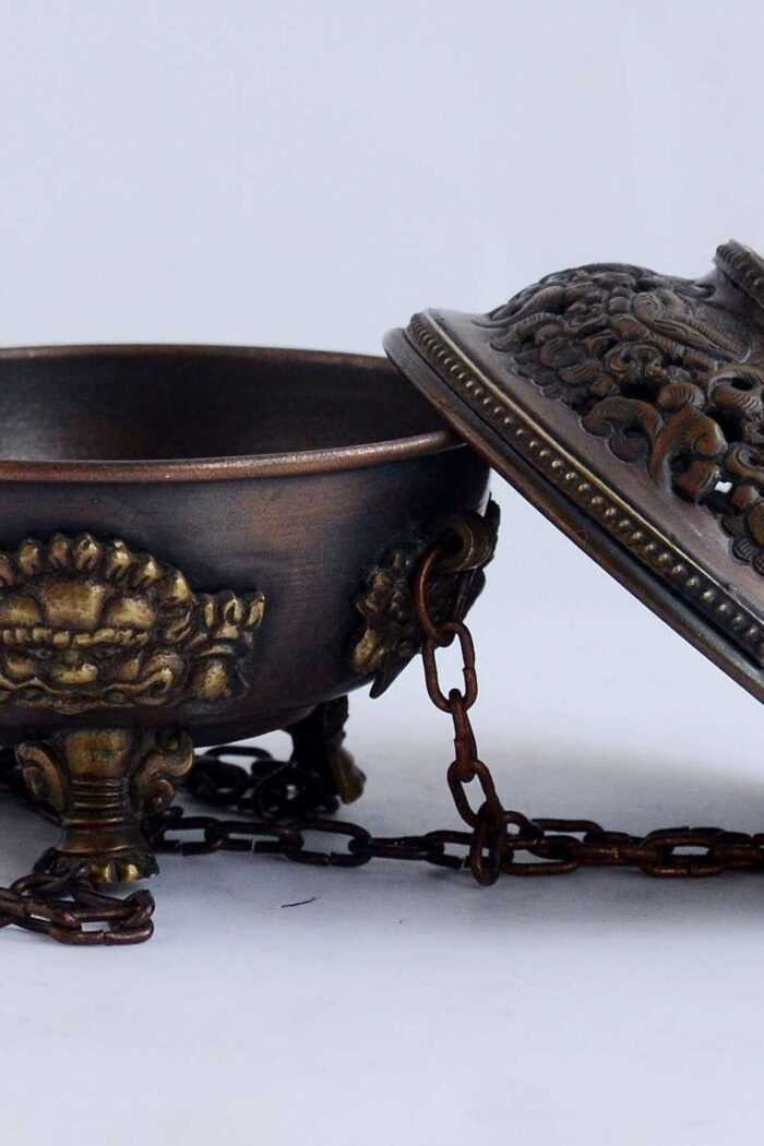 Hanging Incense Burner 3.75″ Nepali Hand Carved (Mixed Metal)