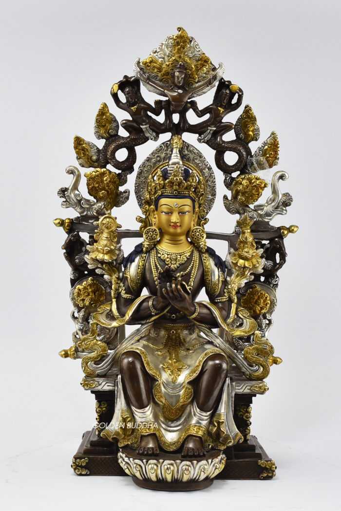 Original price was: $5,199.00.$3,599.00Current price is: $3,599.00.Add to CartGold Silver Plated Copper 13.5″ Maitreya Buddha Statue, Gold Face Painted, Handmade in Patan Nepal