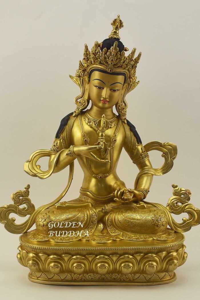 14″ Gold Gilded Vajrasattva Statue, Handmade, Fire Gilded in 24K Gold, (Dorje Sempa)