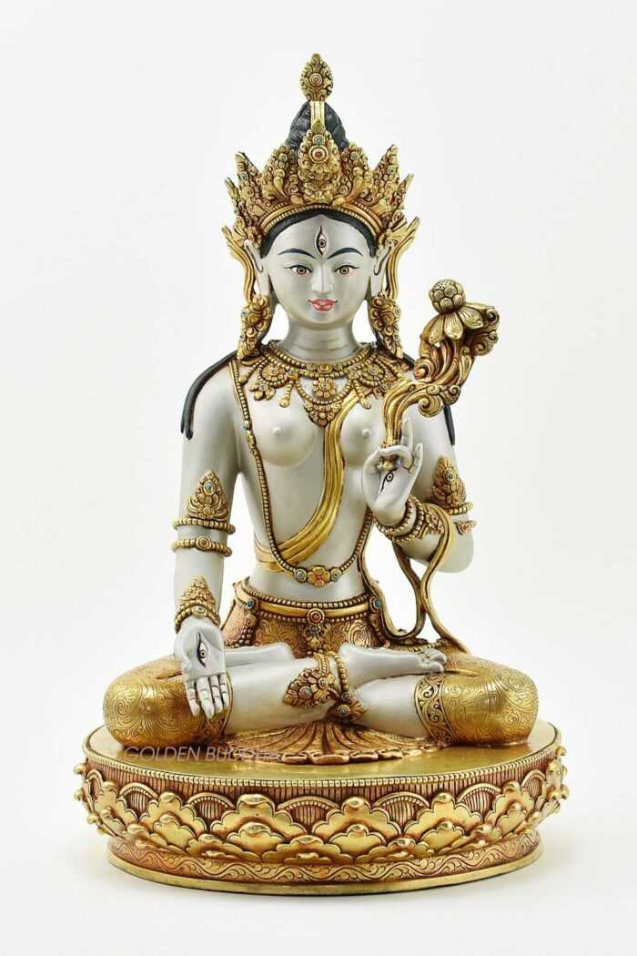 Original price was: $4,799.00.$3,299.00Current price is: $3,299.00.Add to Cart14″ Silver Moon White Tara Statue, Turquoise and Red Coral Stones (Custom Remake)