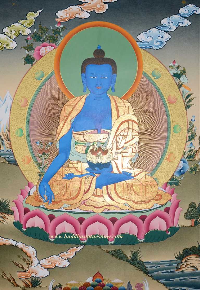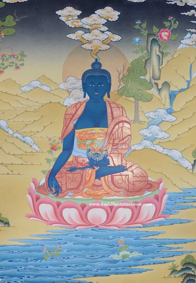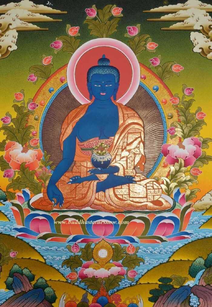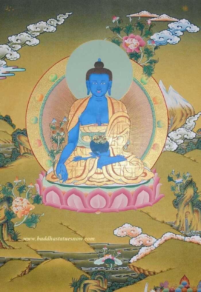 Bhaisajyaguru Thangka Painting, 26.25″ x 20.25″, 24k Gold Detailing