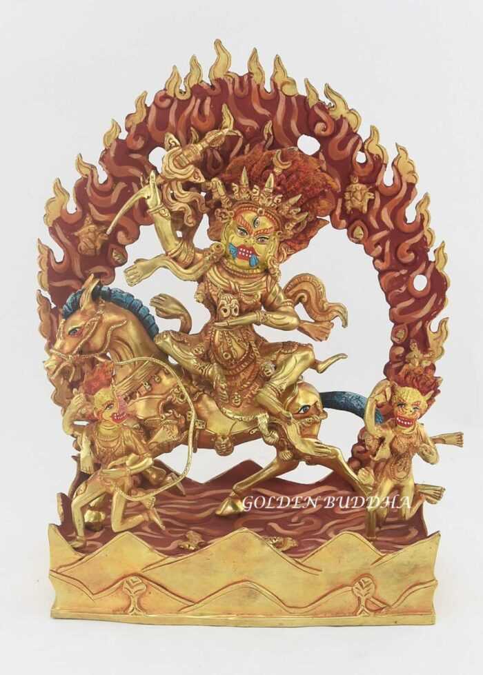Partly Gold Gilded 11.75″ Palden Lhamo Statue, Fire Gilded 24k Gold Finish (Glorious Goddess)
