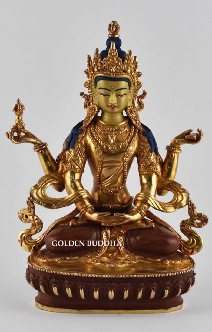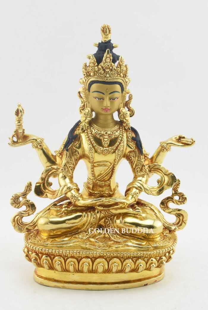 Our Prajnaparamita statues are an embodiment of the Prajna Paramita Sutra. We offer gold gilded Prajnaparamita statues each with 4 arms. A copy of the Prajna Paramita symbolically sits in the upper left hand of Prajnaparamita.