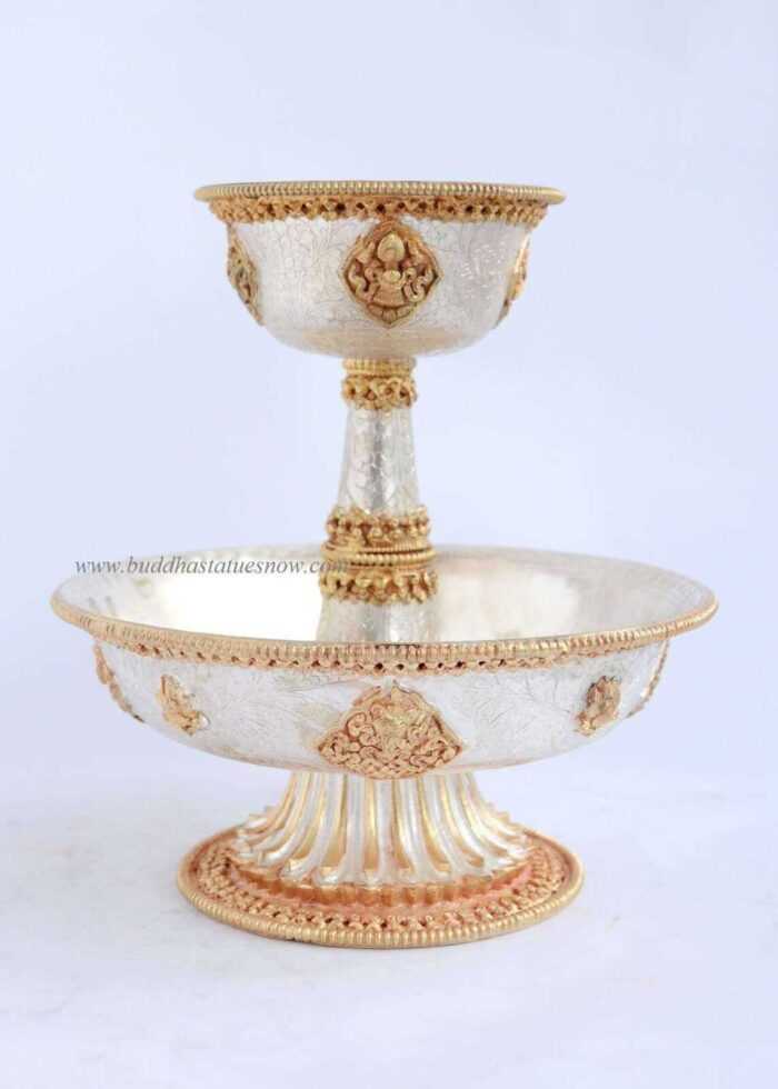 View our selection of Serkyem sets below. Each item is handmade in Patan Nepal by traditional craftsmen finished with gold, silver and brass. Proper use of a Serkyem set is believed to bring good luck and fulfillment of wishes.