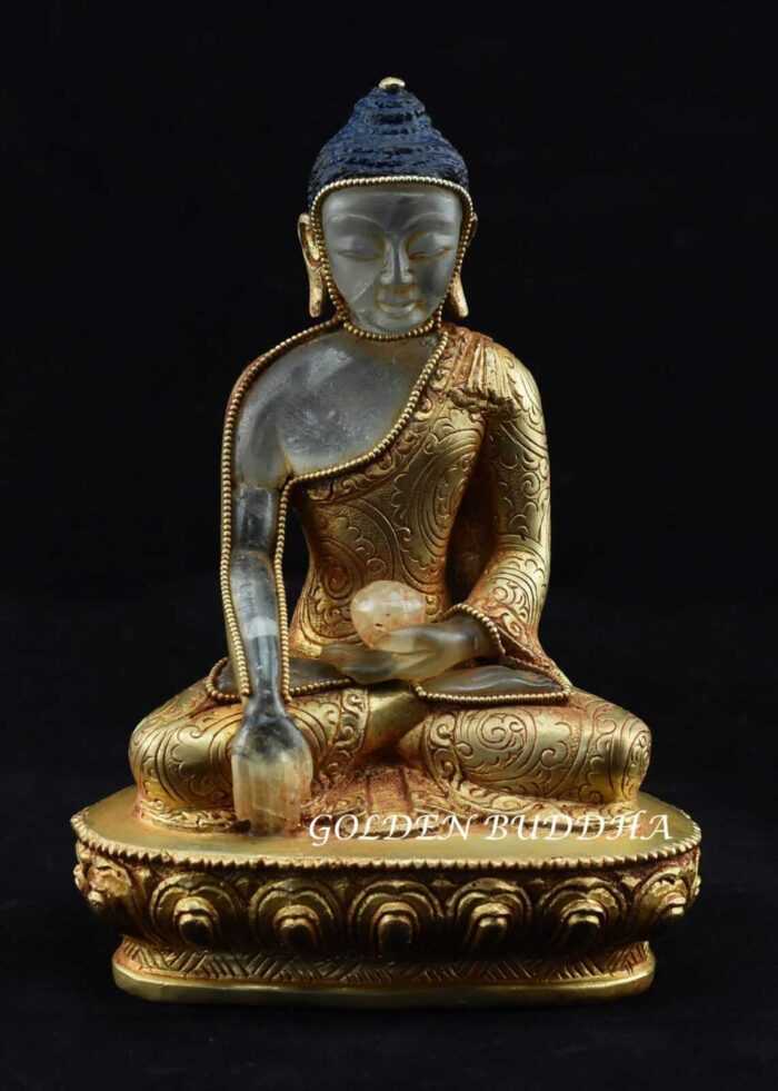 Gold Plated 5.75″ Tomba Shakyamuni Statue, Hand Carved Crystal