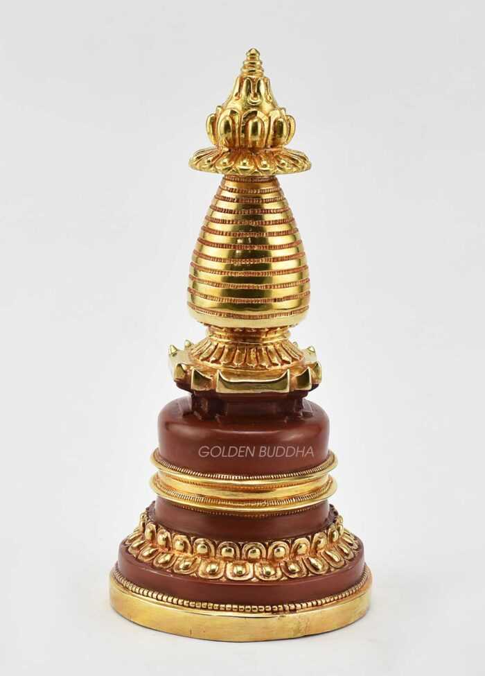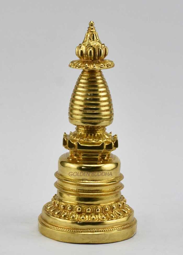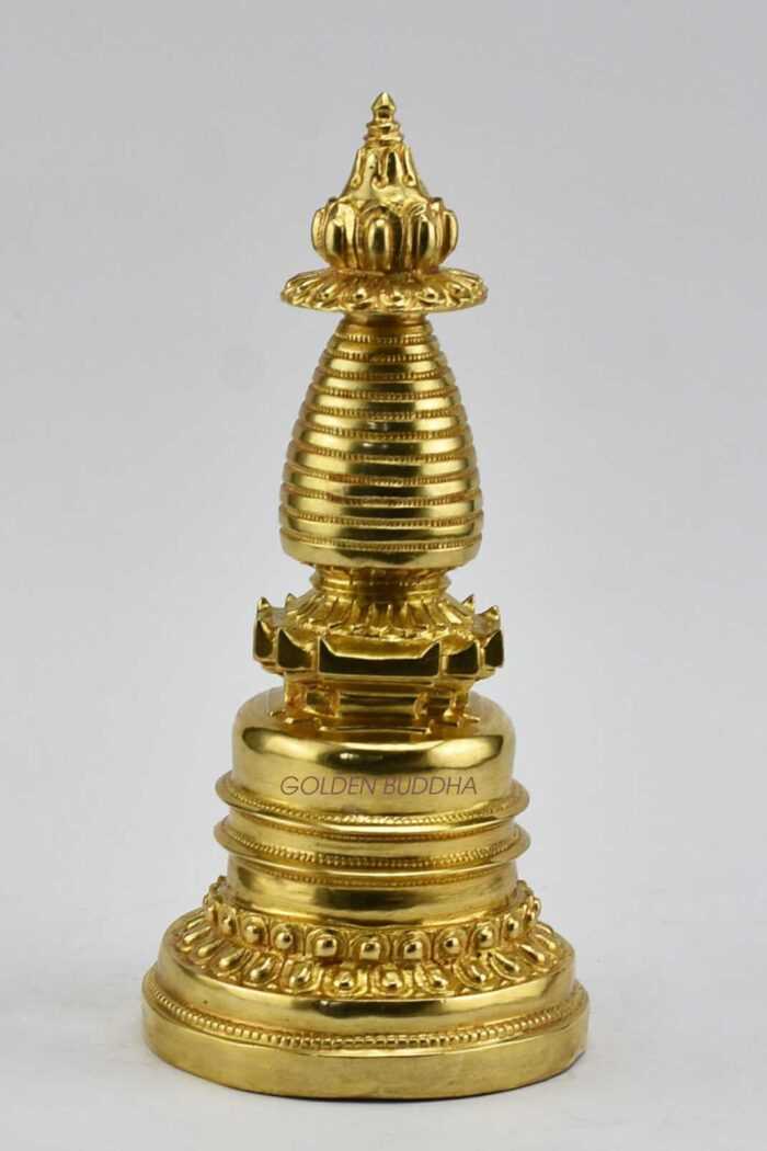 7.75″ Kadam Style Stupa, 24K Gold Finish, Handmade in Nepal