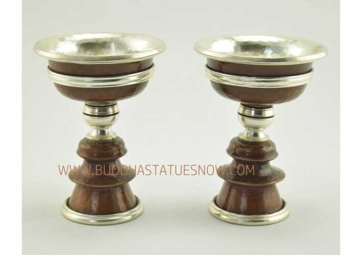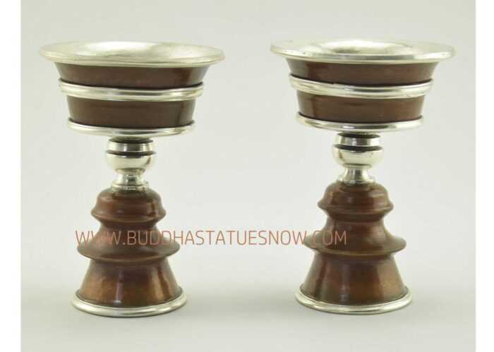 4.25″ Tibetan Butter Lamps Set Antiquated Copper Finish w/Silver Plating