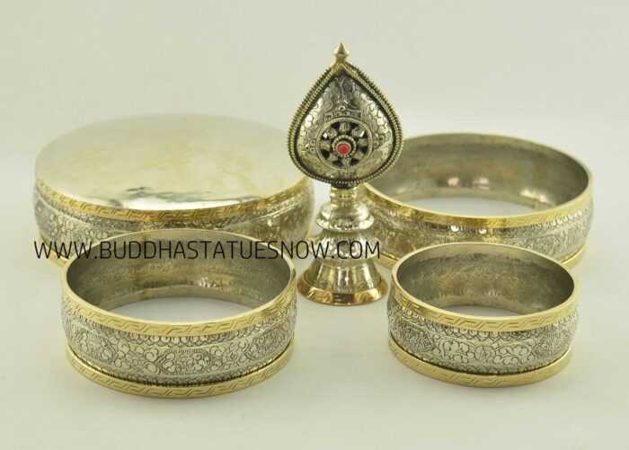 Tibetan Mandala Set 10.25″ Brass Rings, Hand Carved (w/o Base Ring Stand)