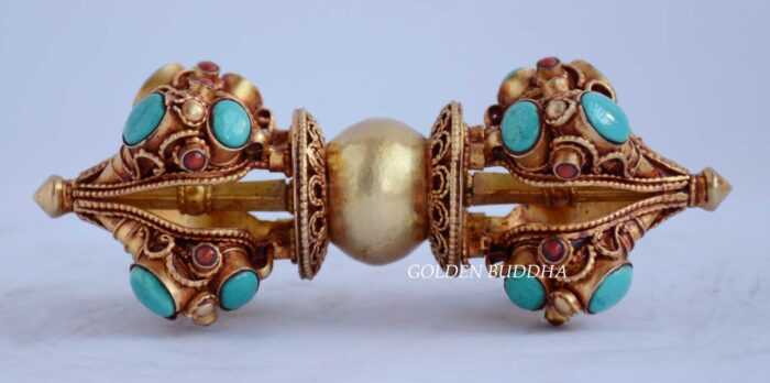 Original price was: $179.00.$89.00Current price is: $89.00.Add to CartVajra 5.5 inches, Fully Gilded 24K, Embedded Turquoise and Coral Stones