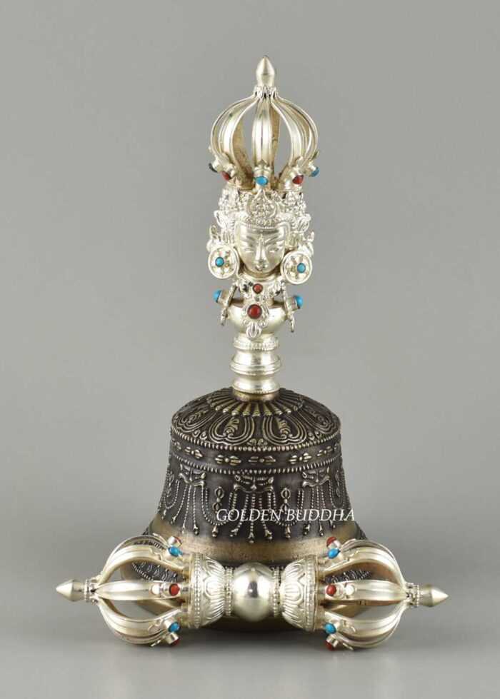 Original price was: $1,099.00.$849.00Current price is: $849.00.Add to CartVajra & Bell Set 8″, Silver Plated, Hand Carved in Nepal, Embedded Turquoise and Red Coral Stones