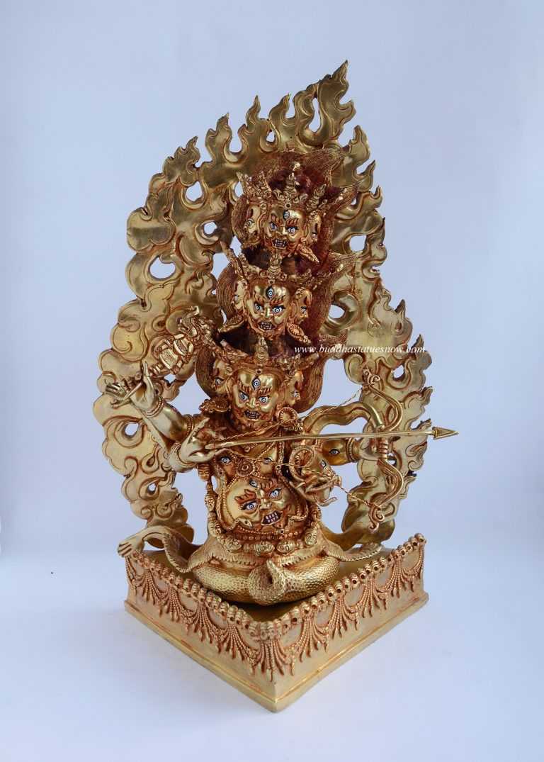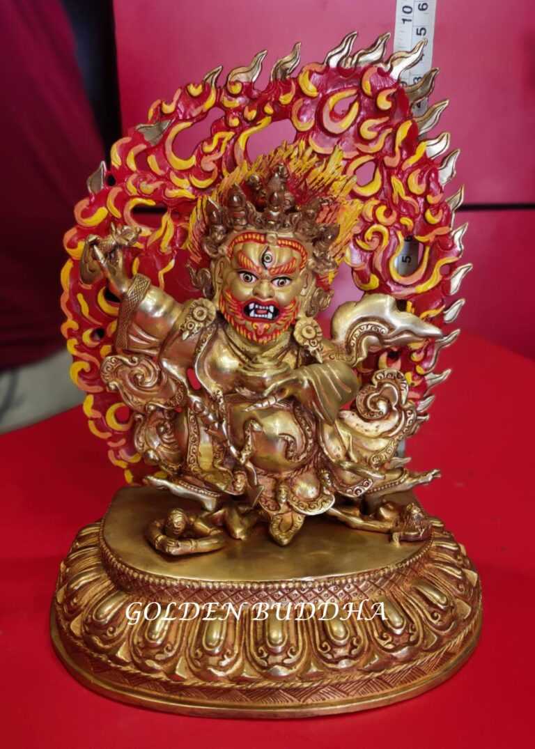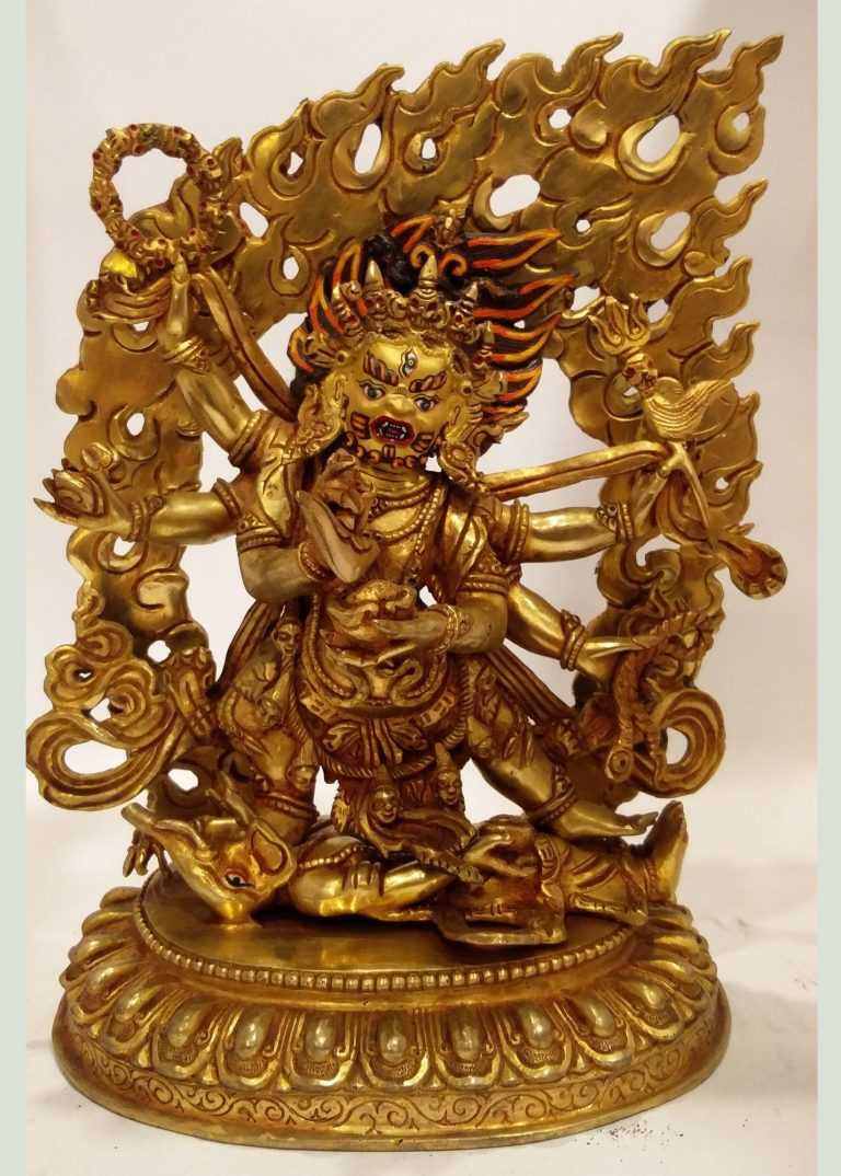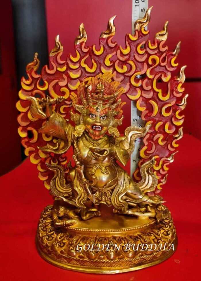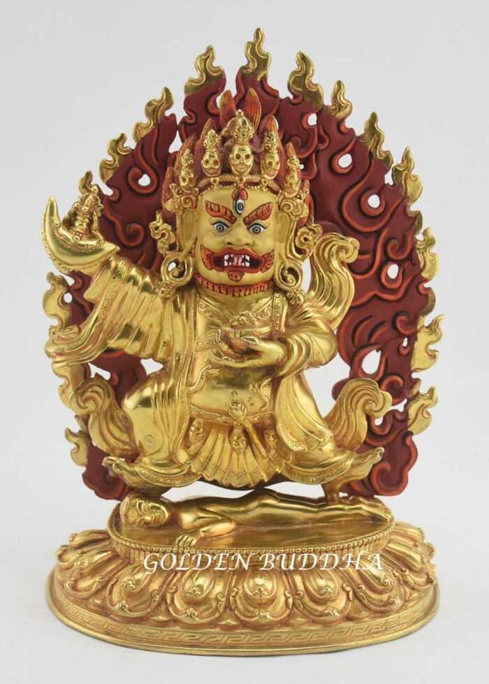 Dharmapala statues are primary components of Tibetan Buddhist practice rituals. Dharmapala also play an important role as protectors of the Dharma. Our sculptors are specialists in using the traditional lost wax sculpting method. As a result, they have become the preferred suppliers of the Tibetan monasteries over many centuries. The statues listed below feature our finely sculpted selection of Dharmapala. Their fearsome appearance make them very effective at removing obstacles to spiritual realization. Choose your statue from the selection below.