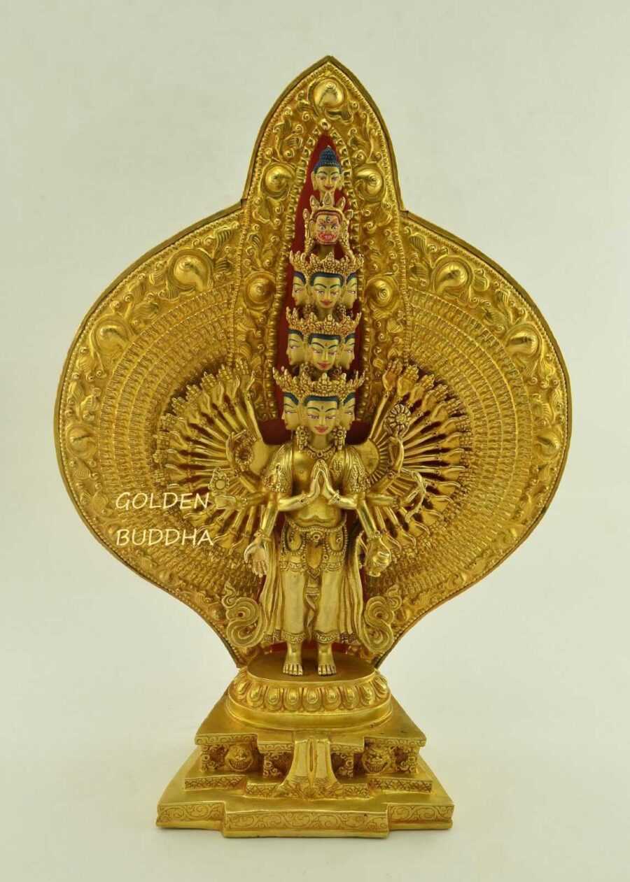 Fully Gold Gilded 14.5″ 1000 Armed Tibetan Chenrezig Statue, Fine Details