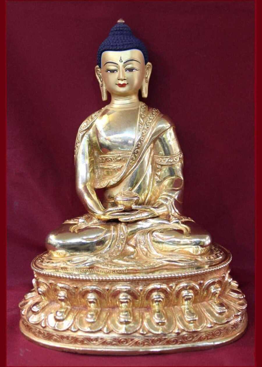 Fully Gold Gilded 8″ Amitabha Buddha Statue for Sale, Handmade 24K Gold Finish