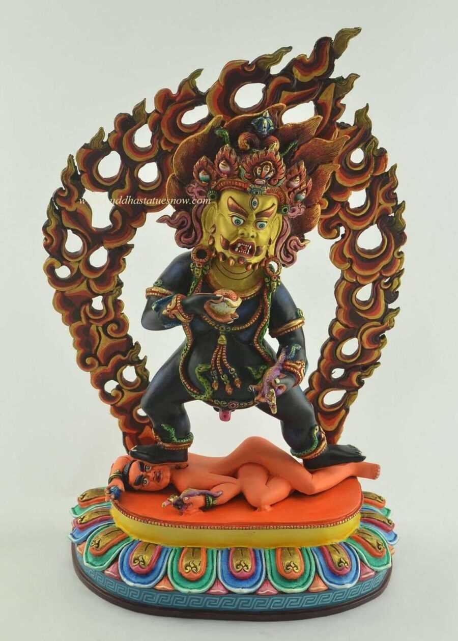 Our Black Dzambhala statue is the god of wealth in Tibetan Buddhism. He is also the Hindu god of wealth – Kubera. Additionally, Black Dzambhala is a manifestation of Amoghasiddhi Buddha at the request of Shakyamuni Buddha.