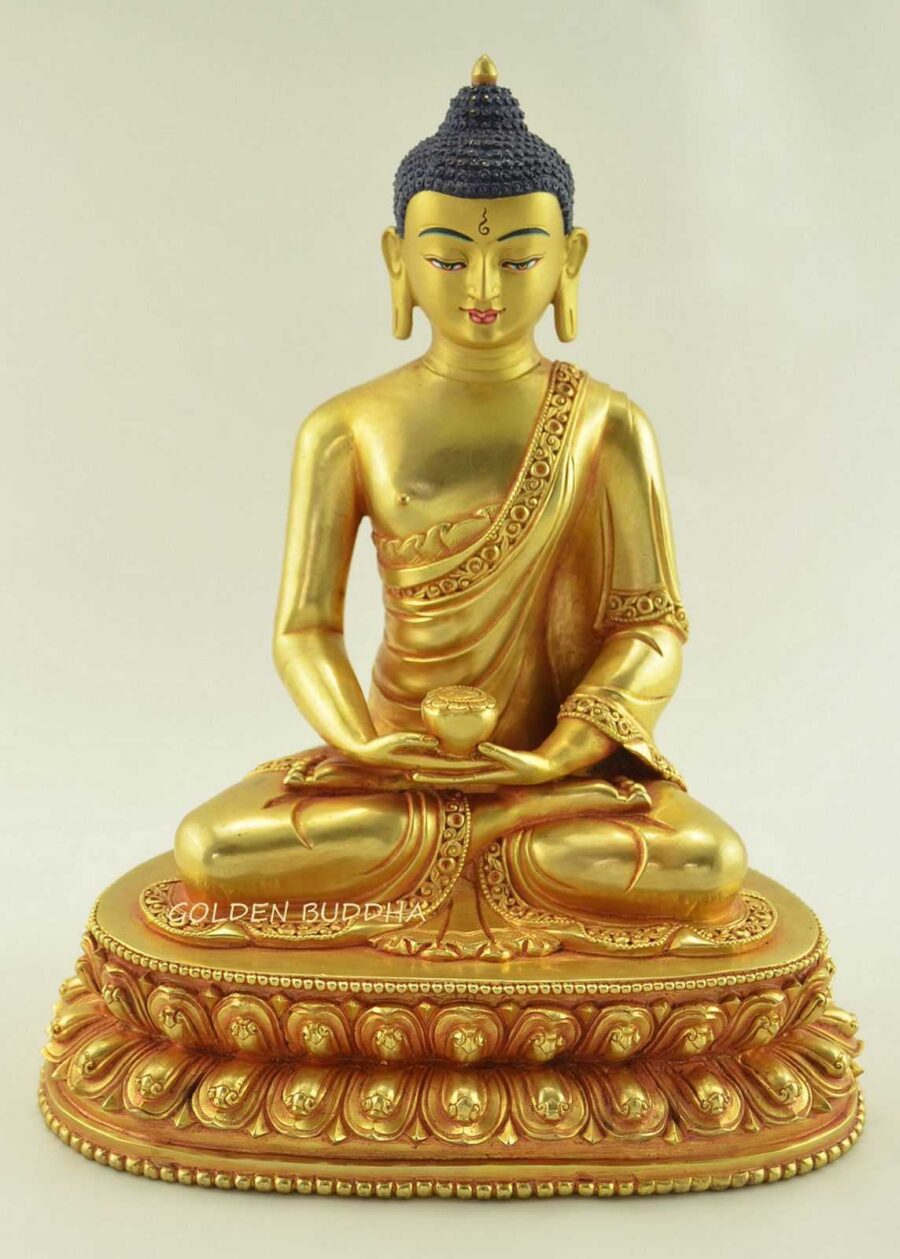 Our gold gilded Amida statue is also known as the Buddha of “infinite light”. Additionally, Amida has a pure land called Sukhavati. Although the other Dhyani Buddhas also have pure lands, Amitabha’s enjoys the most prestige among Pure Land devotees. It is believed that to enter Sukhavati you only need to repeat his name 10 times or recite the mantra.
