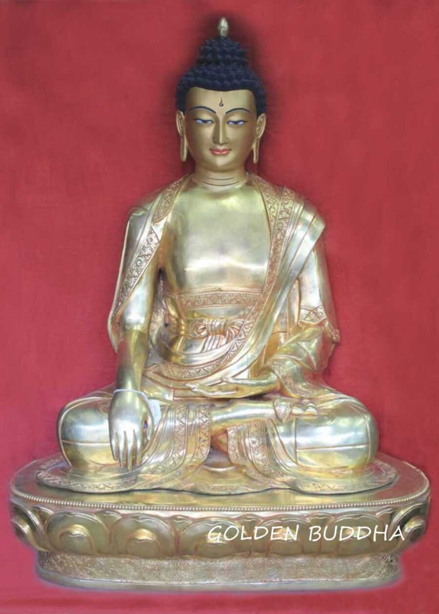 Our handmade large Shakyamuni Buddha statue was handcrafted using the traditional lost wax sculpting method. As a result, the Buddha’s human features are matched with a fine 24k gold finish. The fire gilding method ensures that there is a pure 24k gold residual finish. Indeed, our artisans have long been the source of the Tibetan monasteries for their Buddha sculpture. As a result, you can rest assured you have procured a monastic quality big Buddha statue. Our Shakyamuni Buddha statue is ideal for your home, meditation center or business.