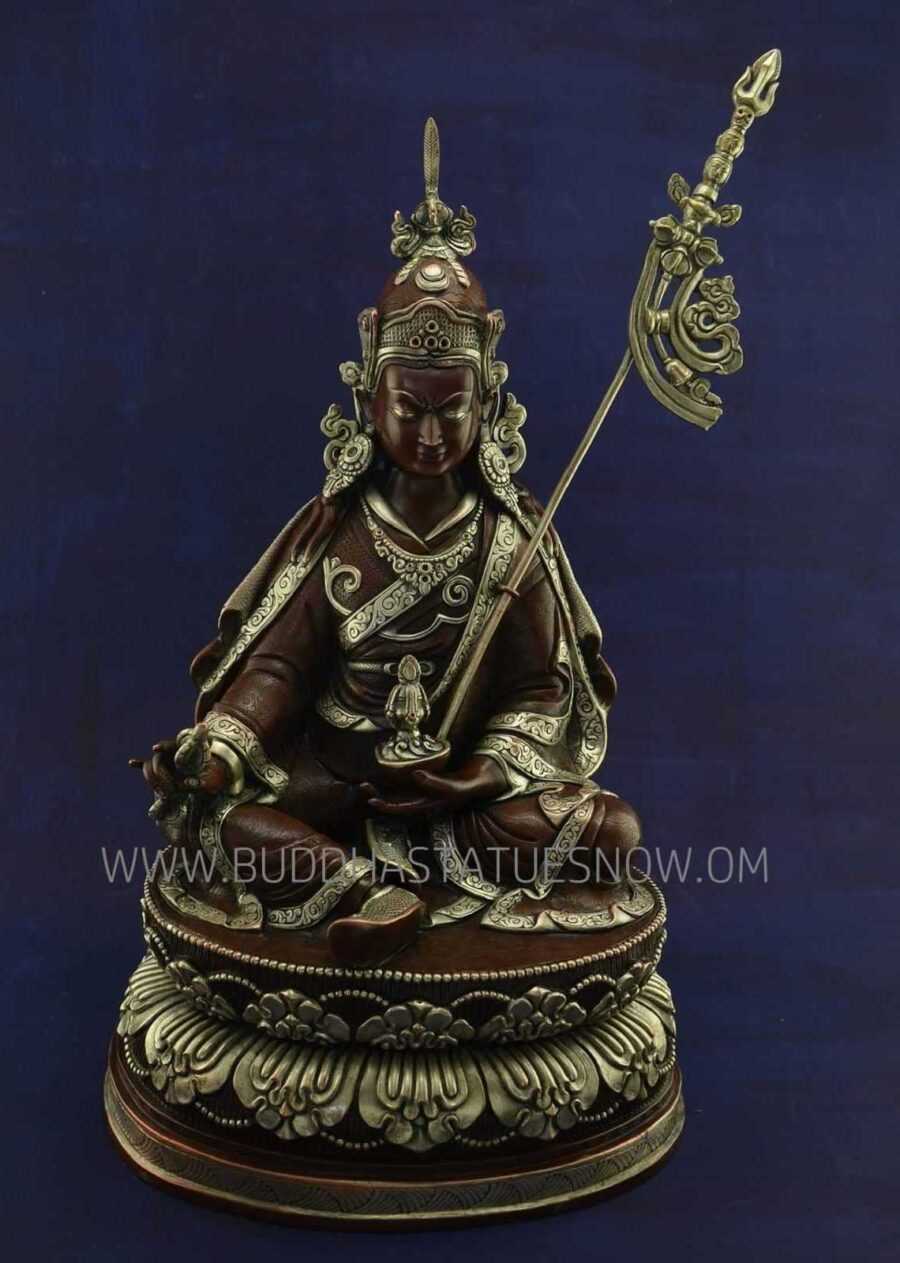 Our Guru Rinpoche statue was handmade using the lost wax method. As a result, it portrays the intricate detail in all aspects of the statue. Additionally, the statue features an oxidized finish which creates an antiquated look. The silver plating adds highlighting to the statue. Click here to learn more about the founding father of Tibetan Buddhism.