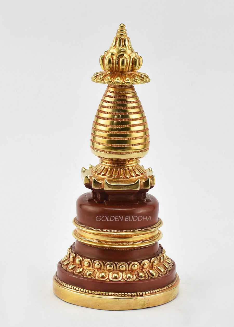 7.75″ Kadam Style Stupa, 24K Gold Finish, Handmade in Nepal