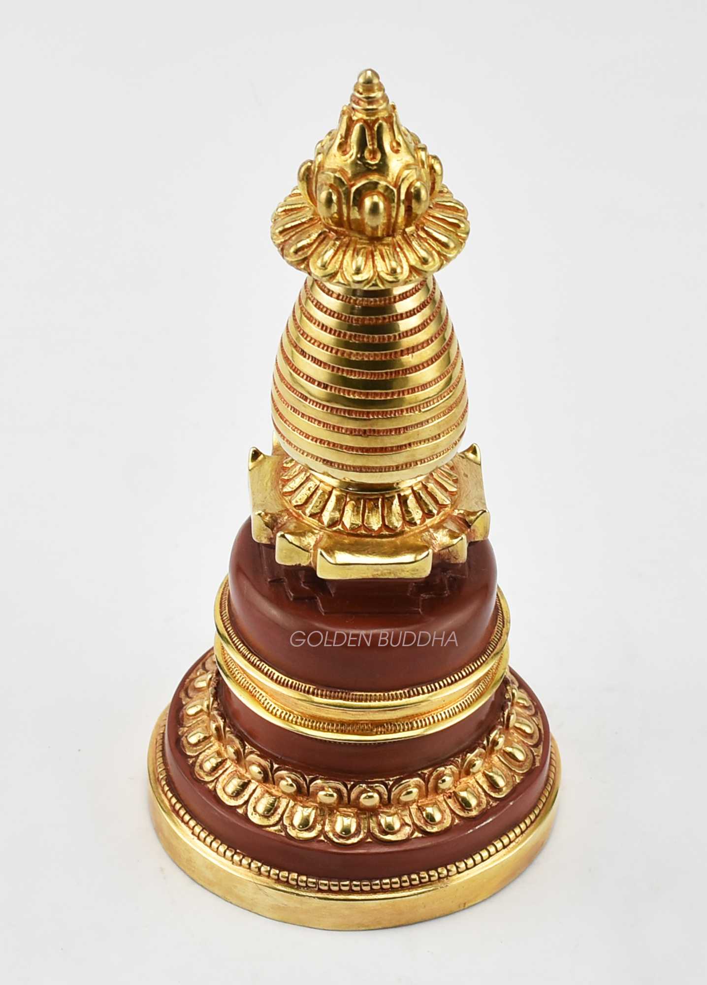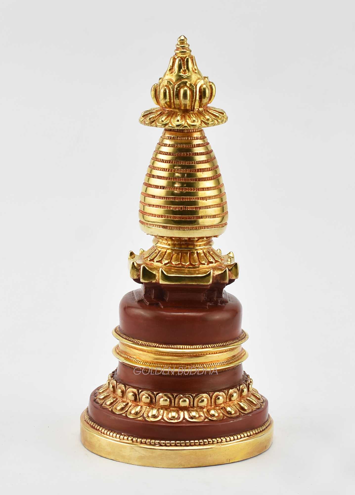 7.75" Kadam Style Stupa, 24K Gold Finish, Handmade in Nepal - Gallery