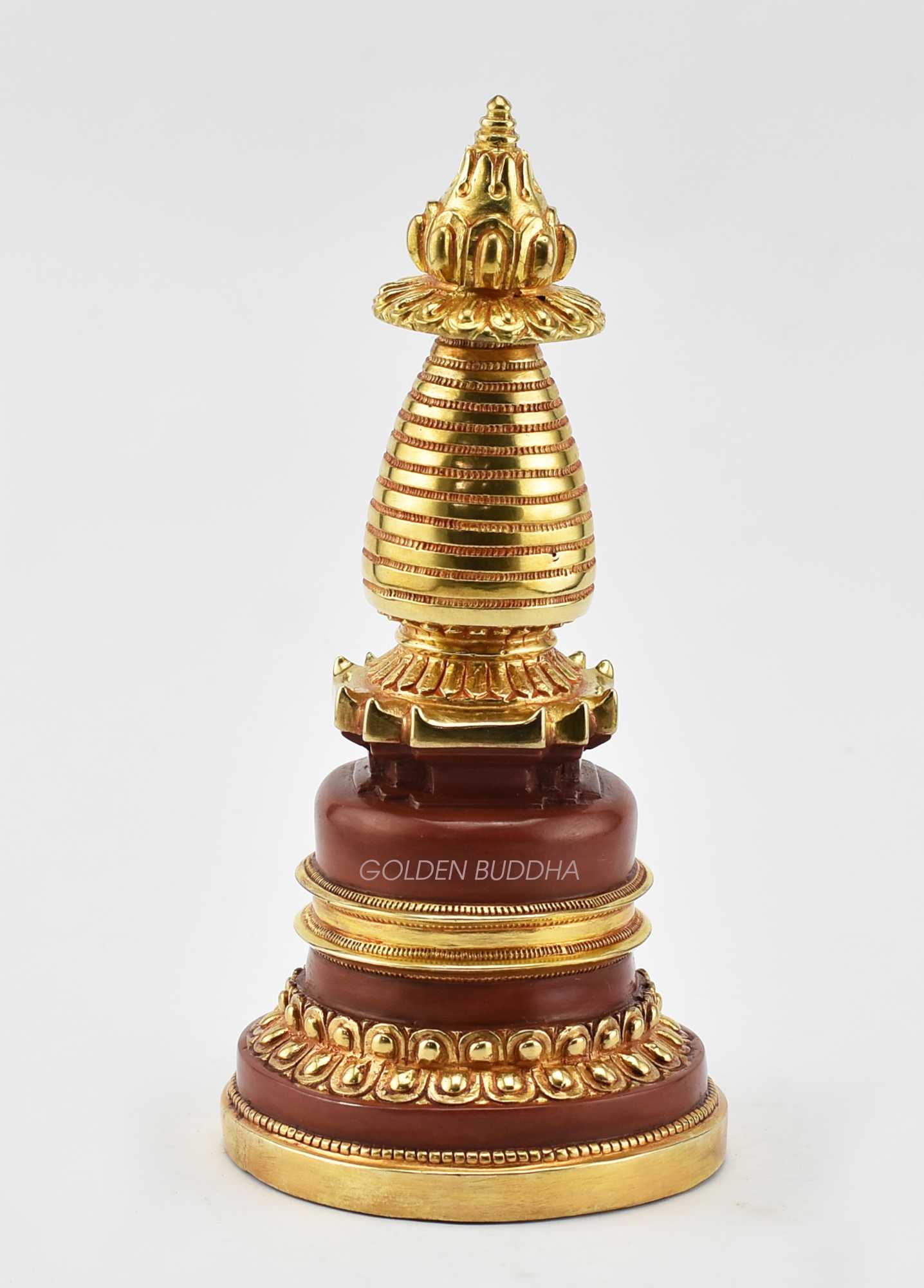 7.75″ Kadam Style Stupa, 24K Gold Finish, Handmade in Nepal