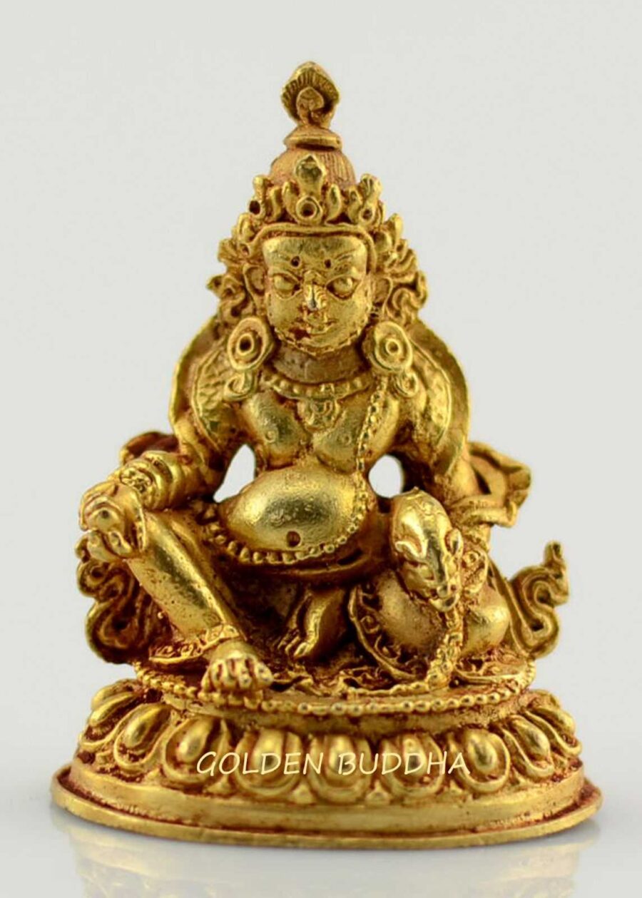 Nehulay, his pet mongoose, is perched on his left forearm spitting forth precious jewels. Additionally, Yellow Jambhala sits in panhandle position because he is always ready to come to the assistance of devotees. As an emanation of Ratnasambhava, Jambhala seeks to alleviate poverty and spread wealth and happiness. As a result, our miniature Yellow Jambhala statue will bring luck and prosperity to the owner.