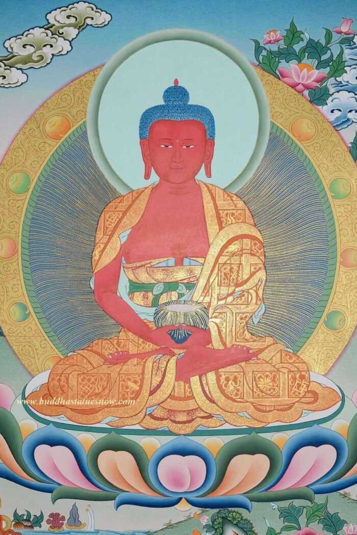 Amitabha Buddha is an important figure in many Buddhist traditions. The our antiquated Amitabha statue is based on the thousands of lifetimes he spent as the bodhisattva Dharmakara. As a result, he accumulated an infinite amount of merit and he acquired his own pure land called Sukhavati. To gain admission his followers only need to say his name or recite the Amitabha mantra 10 times – “Namo Amituofo”. Once admitted, devotees will never be allowed to fall back into the vicissitudes of samsara and they will receive mentoring until they become enlightened beings.