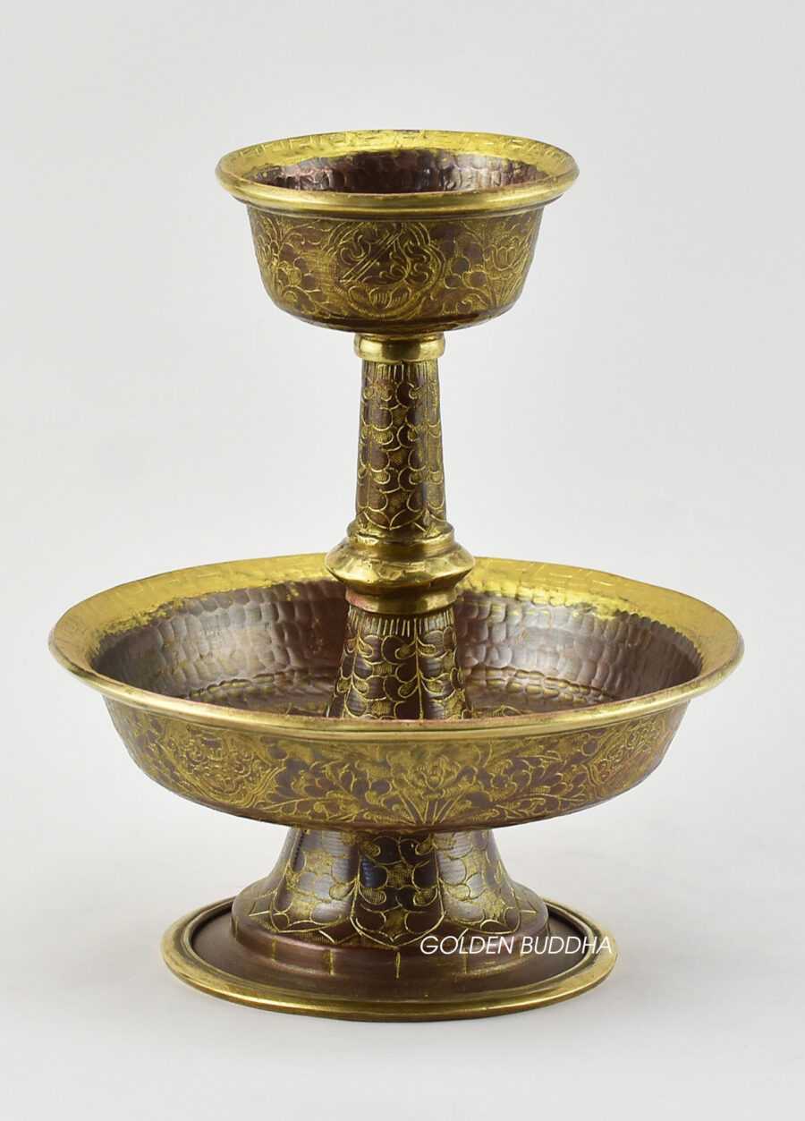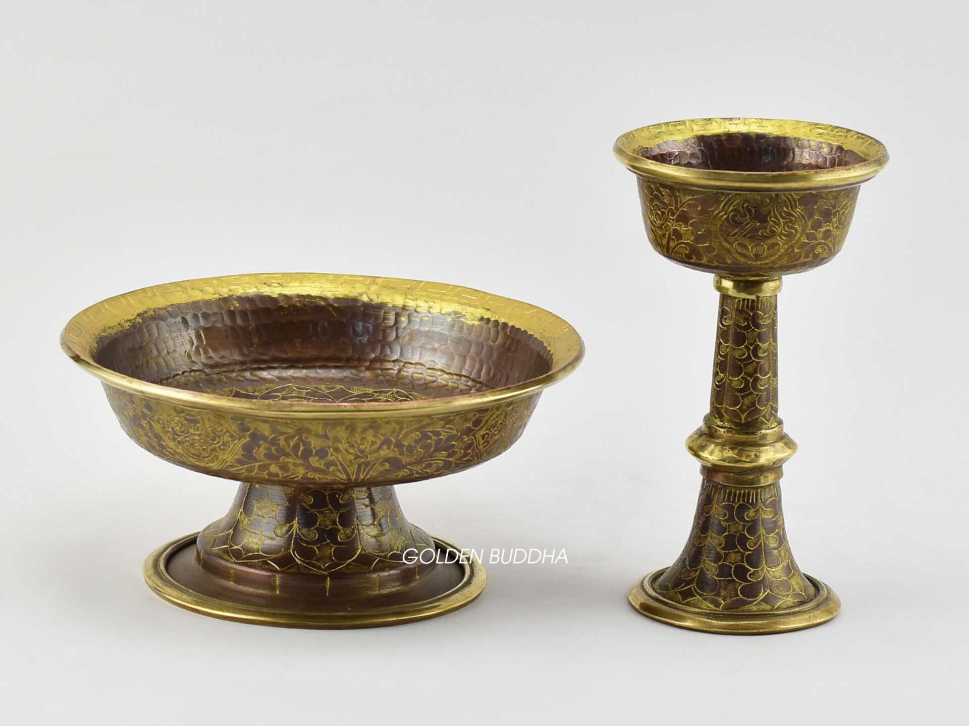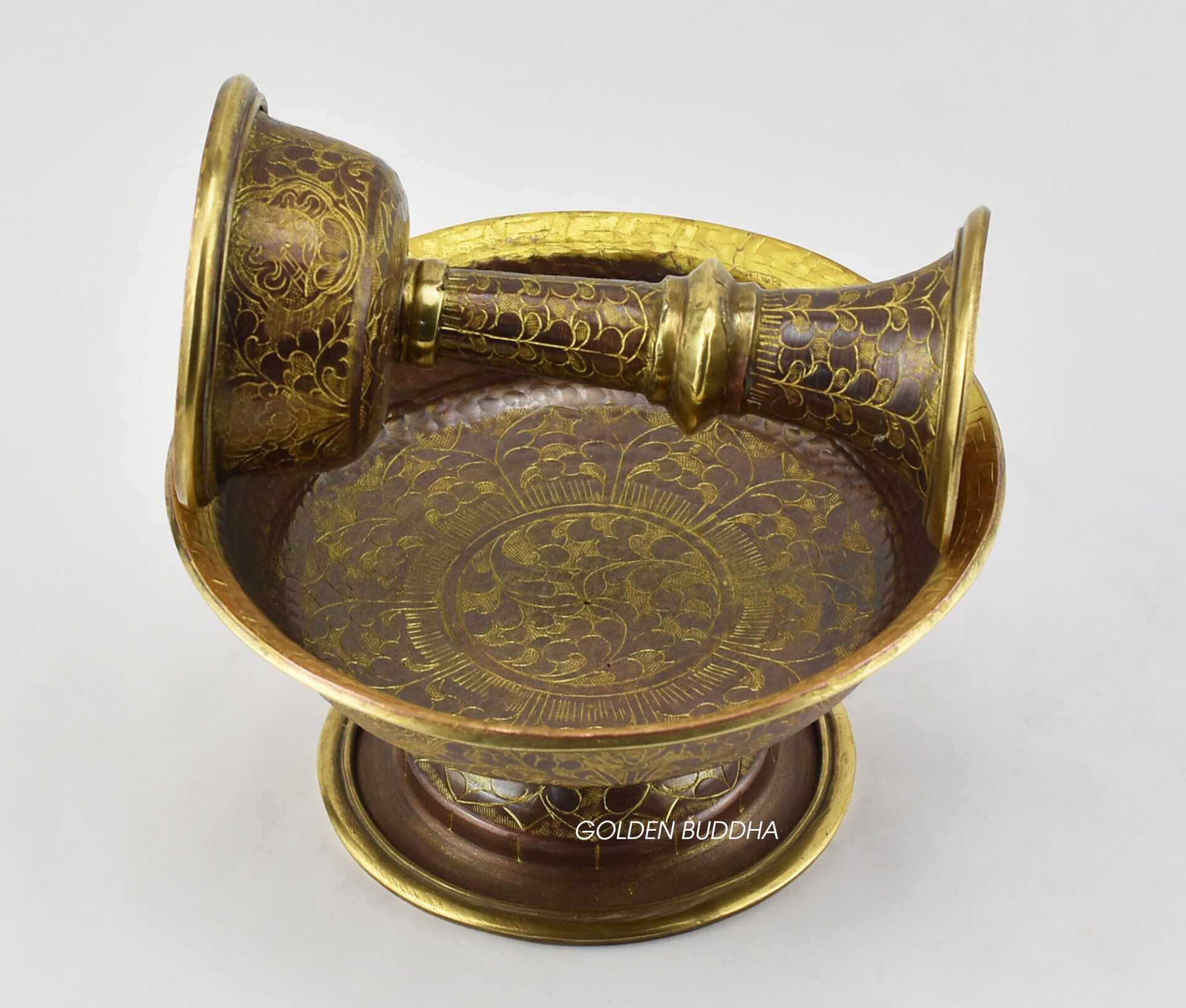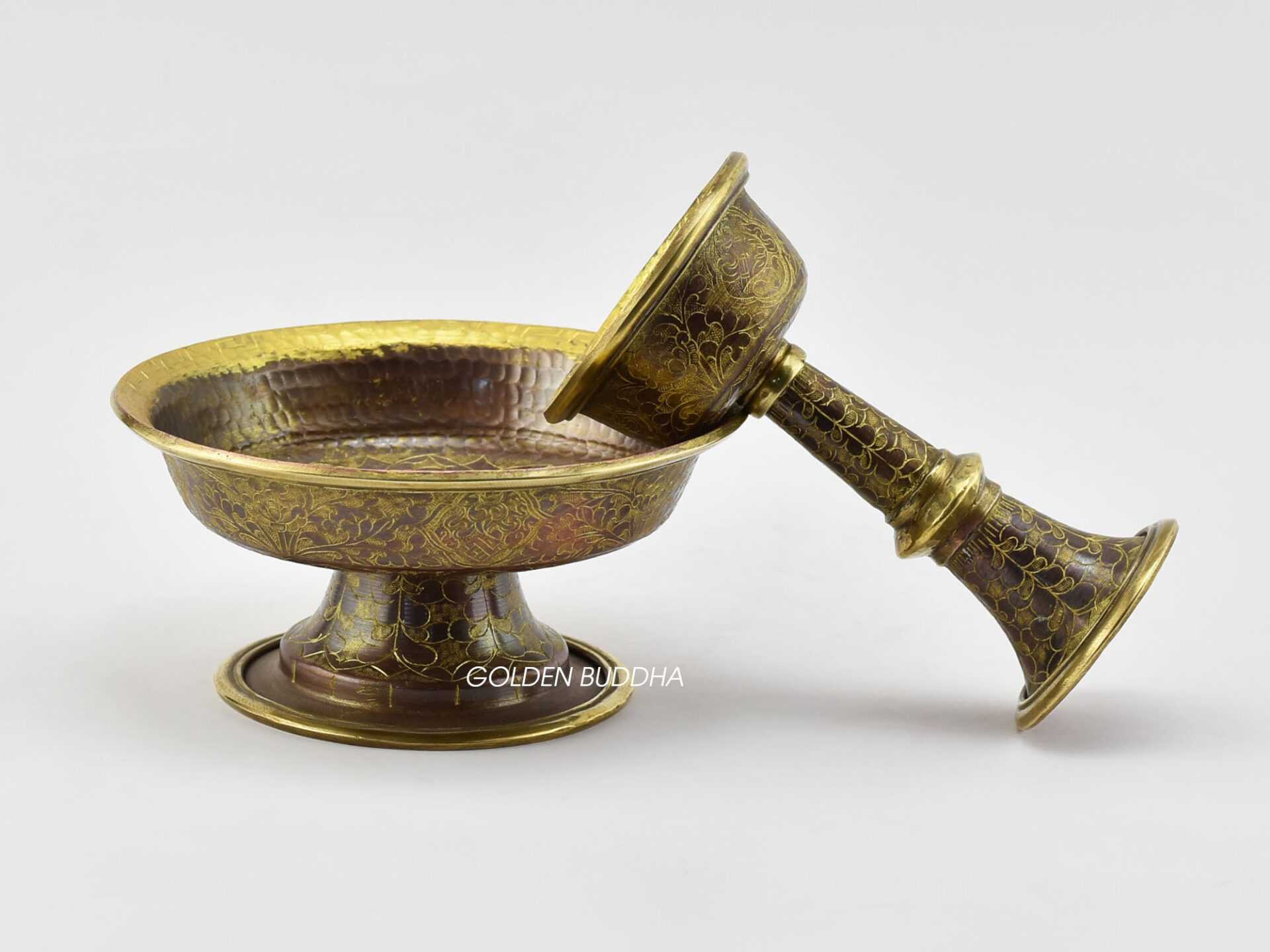 The serkyem set is used during a puja ceremony to make an offering to the dharmapala (protector or guardian). The proper use of the serkyem is believed to bring good luck and the fulfillment of wishes. Additionally, it is recommended to use the best serkyem set for the puja ceremony that is affordable to you. As a result, the dharmapala or other enlightened being will be grateful for your sincerity. Therefore, our hand crafted gold and silver plated serkyem set would be ideal to make such offerings.