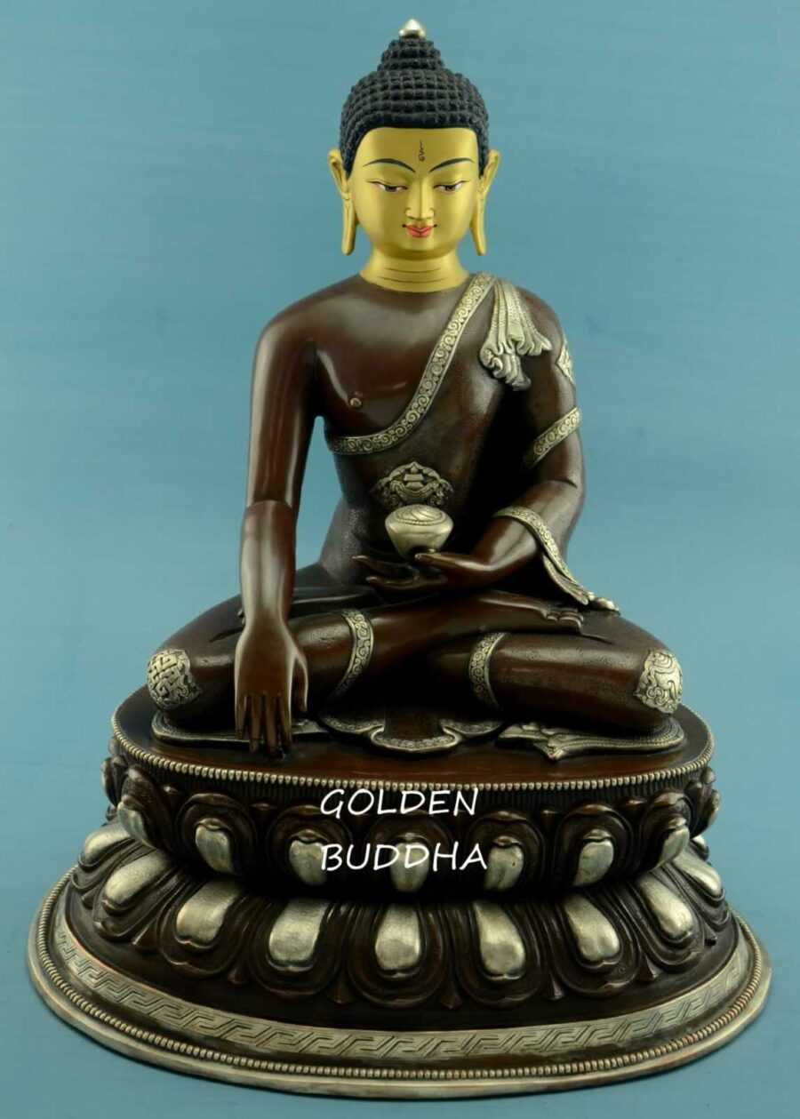 Oxidized Copper 15.5" Shakyamuni Buddha Statue (Silver Plated & Gold Face) - Gallery