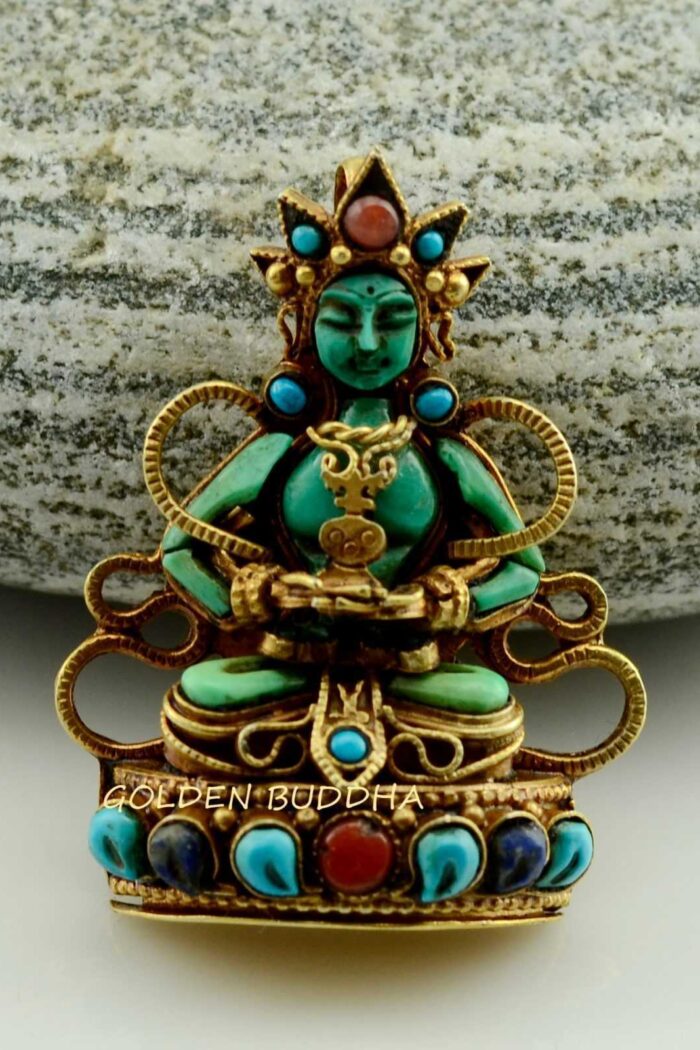 Our 32mm silver ghau pendant was handmade using traditional methods. As a result, it displays beautiful detail and includes embedded semi-precious stones such as coral and turquoise. This silver ghau pendant will allow the owner to travel with inspiration and virtue. Additionally, ghau pendants can also serve as traditional jewelry. Inside the prayer box Tibetan Buddhists can keep special items such as photos, mantras, sacred prayers, special herbs and relics. When you purchase one of our silver ghau pendants you can rest assured that you have procured a monastic quality item.