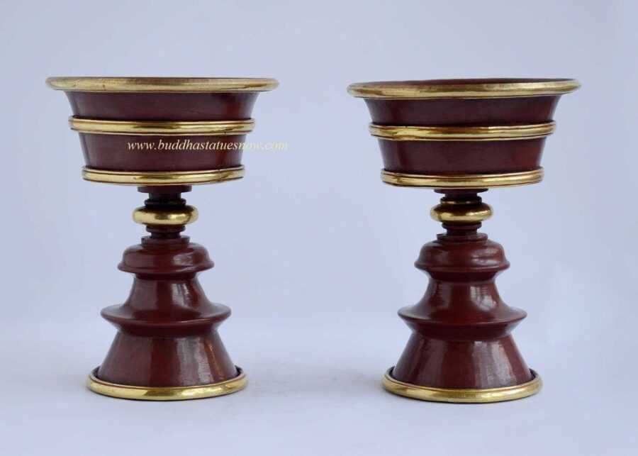 A Tibetan butter lamps set is an iconic Buddhist symbol that has a ubiquitous presence in Tibetan Monasteries. The artisans of Patan, Nepal have supplied the monasteries with all their Tibetan ritual items for many centuries. As a result, when you purchase this Tibetan butter lamps set you can rest assured of it’s quality. Traditionally, the Tibetan butter lamps were filled with clarified yak butter. However, in modern times this is often substituted with vanaspati ghee or vegetable oil. The purpose of the lamps is to illuminate darkness (ignorance) with light (wisdom).