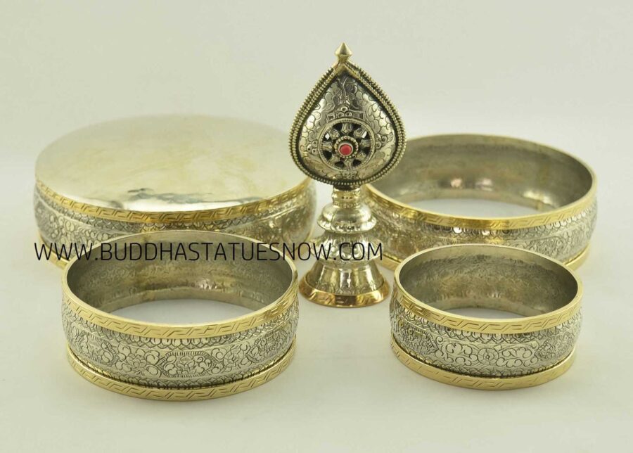 This is a beautiful set, nice sturdy metal and lovely decorative design. It will be a perfect addition to my altar and a pleasure to use in my ngondro practice. Thank you for the excellent customer service: great communication, fast shipment, well-packed.