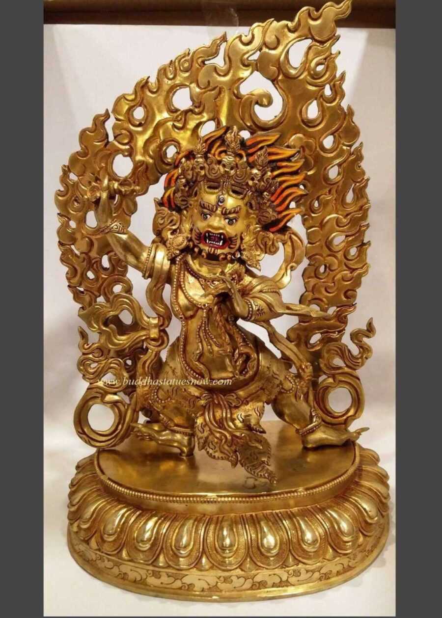 Our Vajrapani statue represents the Buddha’s power and he is a most venerable Bodhisattva deity. Additionally, his existence as a protector is referenced in the Pali Canon. Furthermore, the Golden Light Sutra gives him the title of the “Great General of the Yakshas”.